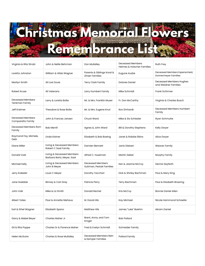 Christmas 2025 Memorial Flowers Remembrance List